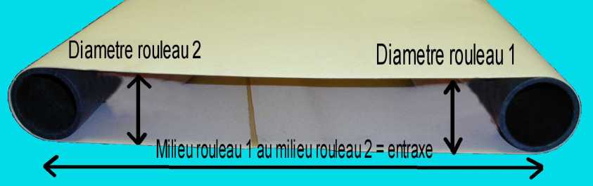 | La 2ème méthode pour le calcul de la longueur développée consiste à utiliser: o une ficelle qu’on mesure ensuite o un crayon. On marque mètre par mètre la bande sur la machine en la faisant défilée (ATTENTION, bien vérifier que le système de réglage de la tension n’est pas au maximum afin de pouvoir tendre la bande que nous vous livrerons. Au mieux, la tige fileté de la tension doit être à 10 ou 20 mm de sa position minimale) : |